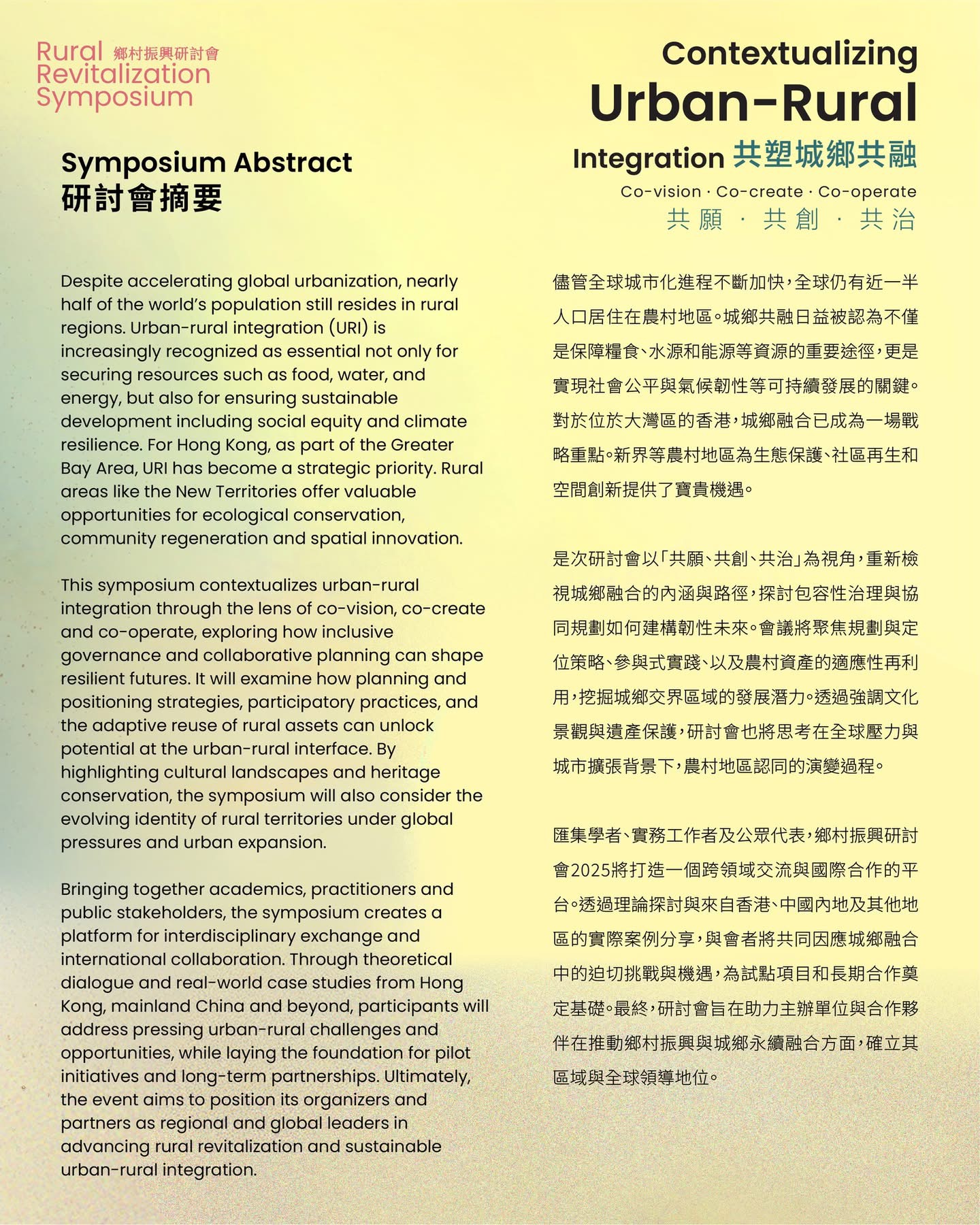 研討會主題為共塑城鄉共融:共願、共創、共治;設有三個論壇及平行論壇,同時設有展覽活動。