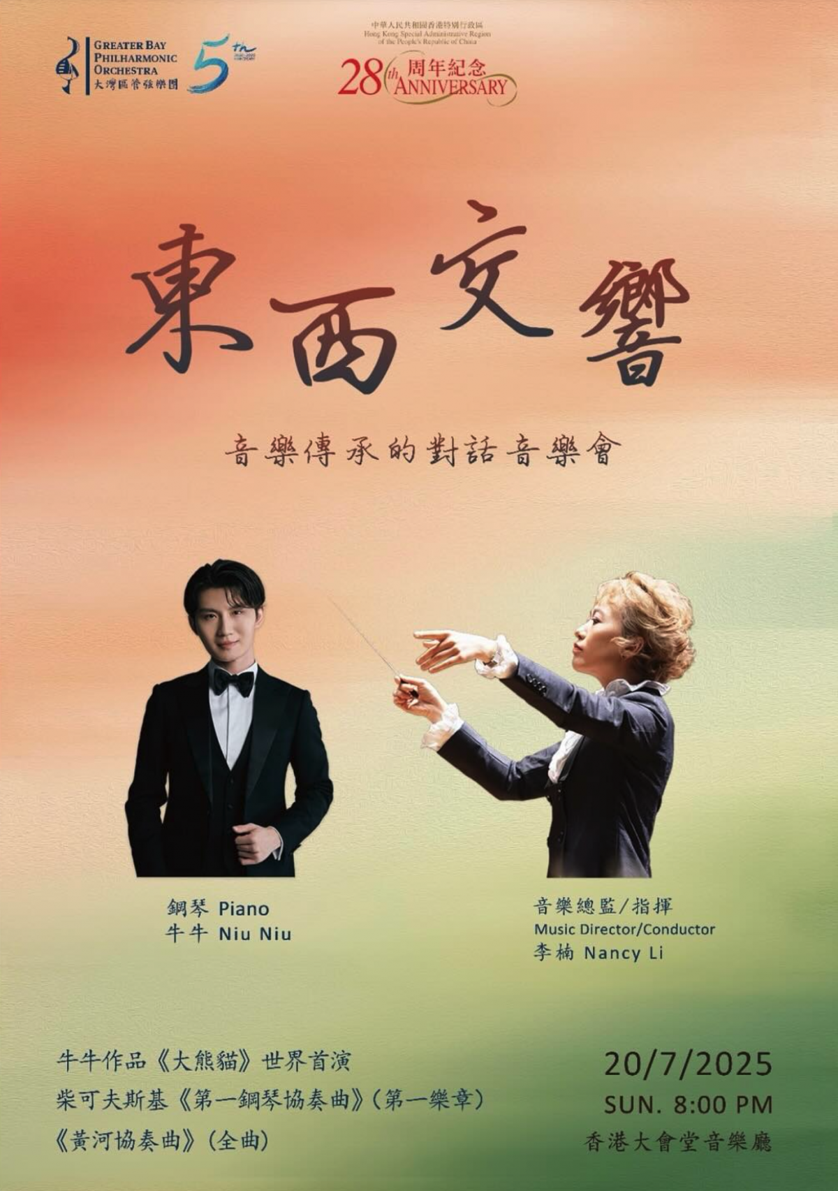 為慶祝香港回歸28周年,大灣區管弦樂團聯手鋼琴家牛牛演繹經典作品。每首樂曲都承載著深厚的文化底蘊,音樂已成為跨越疆界的語言。在指揮李楠的執棒下,這是一場跨越東西的音樂史詩,共同打造令人難忘的音樂之夜。