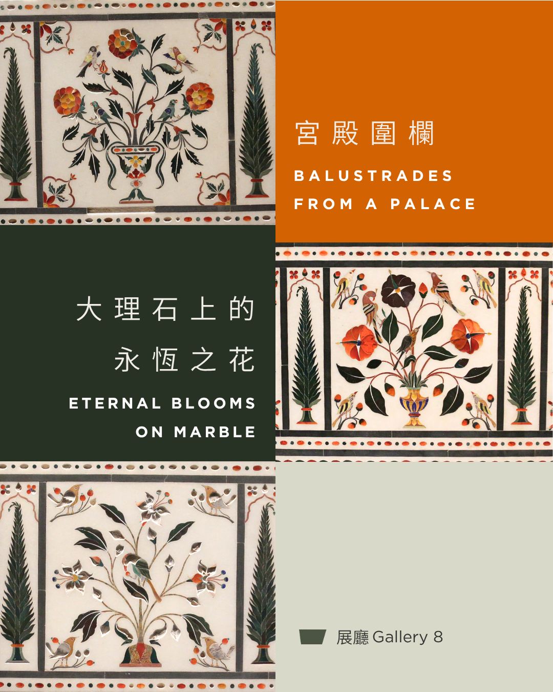 莫臥兒王朝是南亞歷史上最具影響力的王朝之一,由巴布爾皇帝(1526–1530年在位)創立,是一個由穆斯林統治並以波斯語為官方語言的王朝。「莫臥兒」即波斯語中的「蒙古」,因為巴布爾是中亞征服者帖木兒(1370–1405年在位)和大蒙古國創建者成吉思汗(1206–1227年在位)的後裔。在其鼎盛時期,版圖從現今阿富汗的喀布爾延伸至次大陸南部的德干蘇丹國邊界,至印度西部的古吉拉特,東達現在的孟加拉。1560至1660年代正值莫臥兒王朝的「黃金時代」。在這百年間,莫臥兒王朝由三位最具代表性的皇帝統治──阿克巴(1556–1605年在位)、其子賈漢吉爾(1605–1627年在位)以及其孫沙賈汗(1628–1658年在位),他們培養了一種求知的氛圍,並致力促進南亞、中國、伊朗和歐洲等地的文化藝術交流,造就獨樹一幟的莫臥兒藝術風格。莫臥兒王朝承載着深遠非凡的文化、藝術和建築遺產,其中包括由沙賈汗皇帝下令修建、被列入「世界新七大奇蹟」的泰姬陵。本次展覽亦會展出與泰姬陵相關的文物,並特設「泰姬陵:永恆之愛與建築瑰寶」沉浸式數碼媒體展示,深入介紹這座世界文化遺產的歷史故事及藝術價值。時至今日,在南亞地區,與沙賈汗統治時期相似的建築風格和花卉裝飾依然隨處可見。莫臥兒的影響力更伸延至全球,例如英語中「mogul」一詞與「Mughal」發音相似,用來形容如同莫臥兒君主般擁有巨額財富和權力的人。