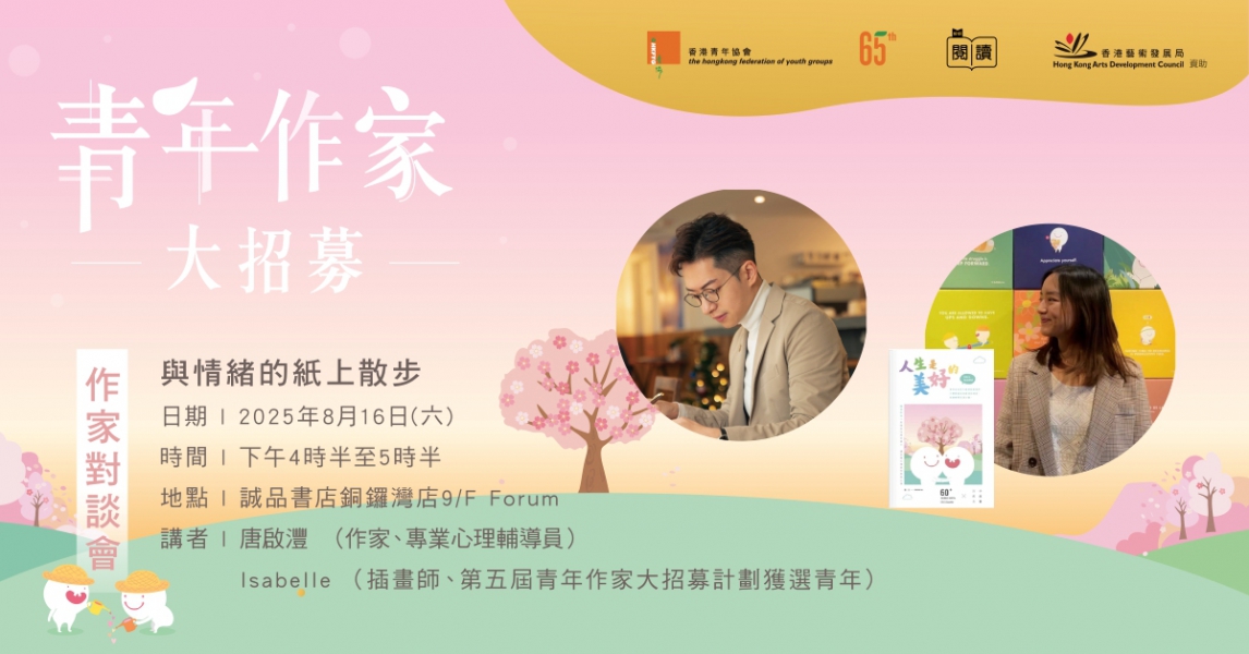 讓情緒被看見,就是療癒的起點。作家及專業心理輔導員唐啟灃,將與療癒系插畫師Isabelle分享他們如何透過文字與插畫,描繪內心風景,一起在紙上漫步,談談心理健康與擁抱情緒的經驗。