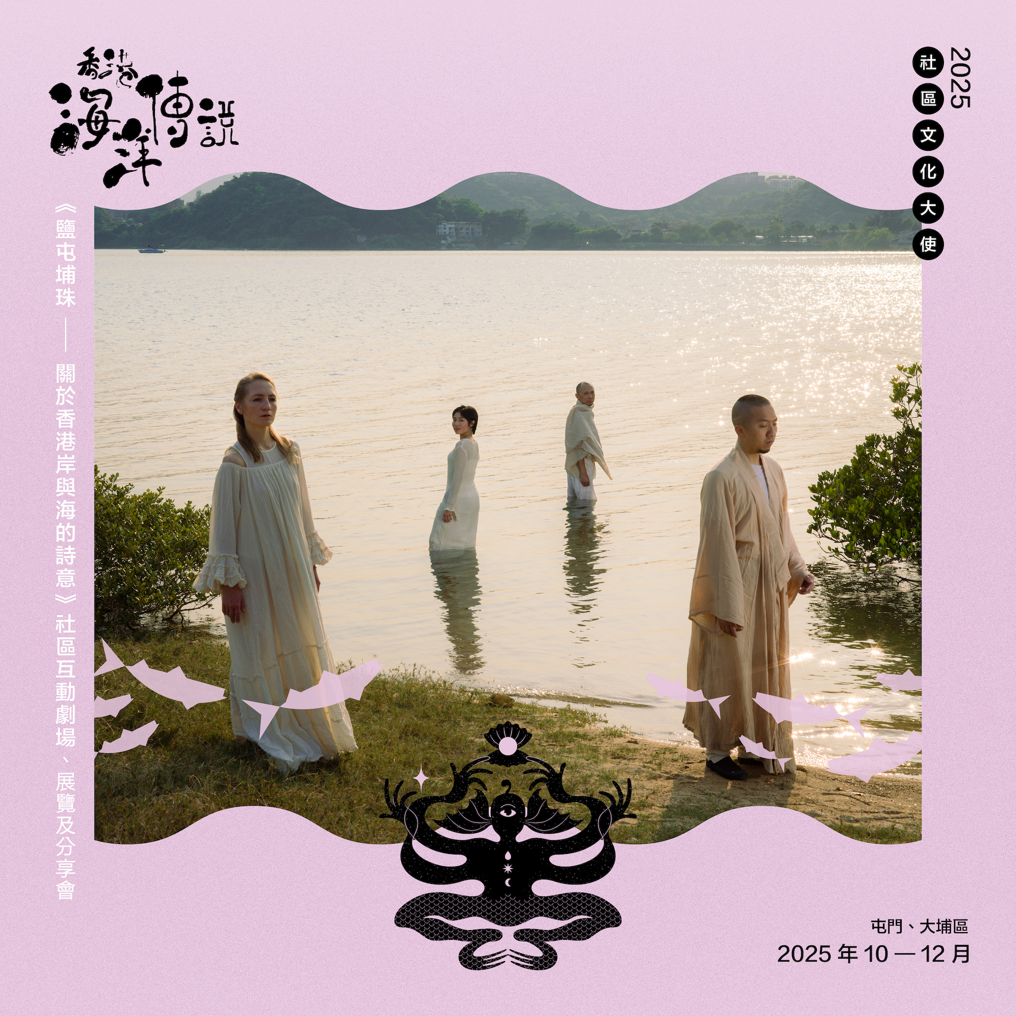由以太舞踏劇場製作的社區互動劇場《鹽屯埔珠—關於香港岸與海的詩意》,以大埔和屯門的海洋往事為靈感,創作團隊在神話、史實、都市傳說和民間奇譚之中採擷素材,並以音樂和劇場 為媒介,在昔日傳奇和當代社區生活之間勾畫微妙連結,以聲音和形體演繹一闕有關勞動者和生態的詩歌。