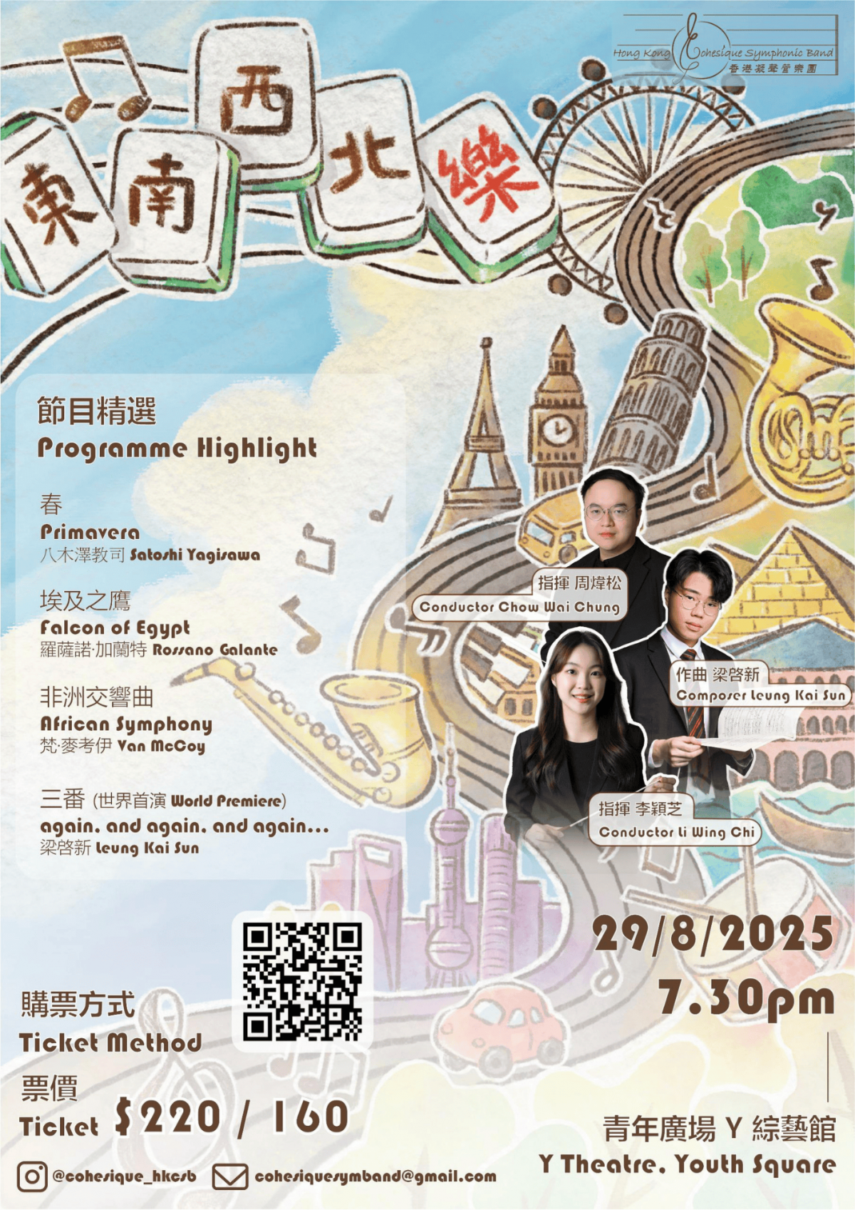 此外,《三番》是由香港凝聲管樂團委託的作品,作曲家是梁啓新,這首曲子與「東南西北」主題緊密相關,將在此音樂會上進行全球首演!