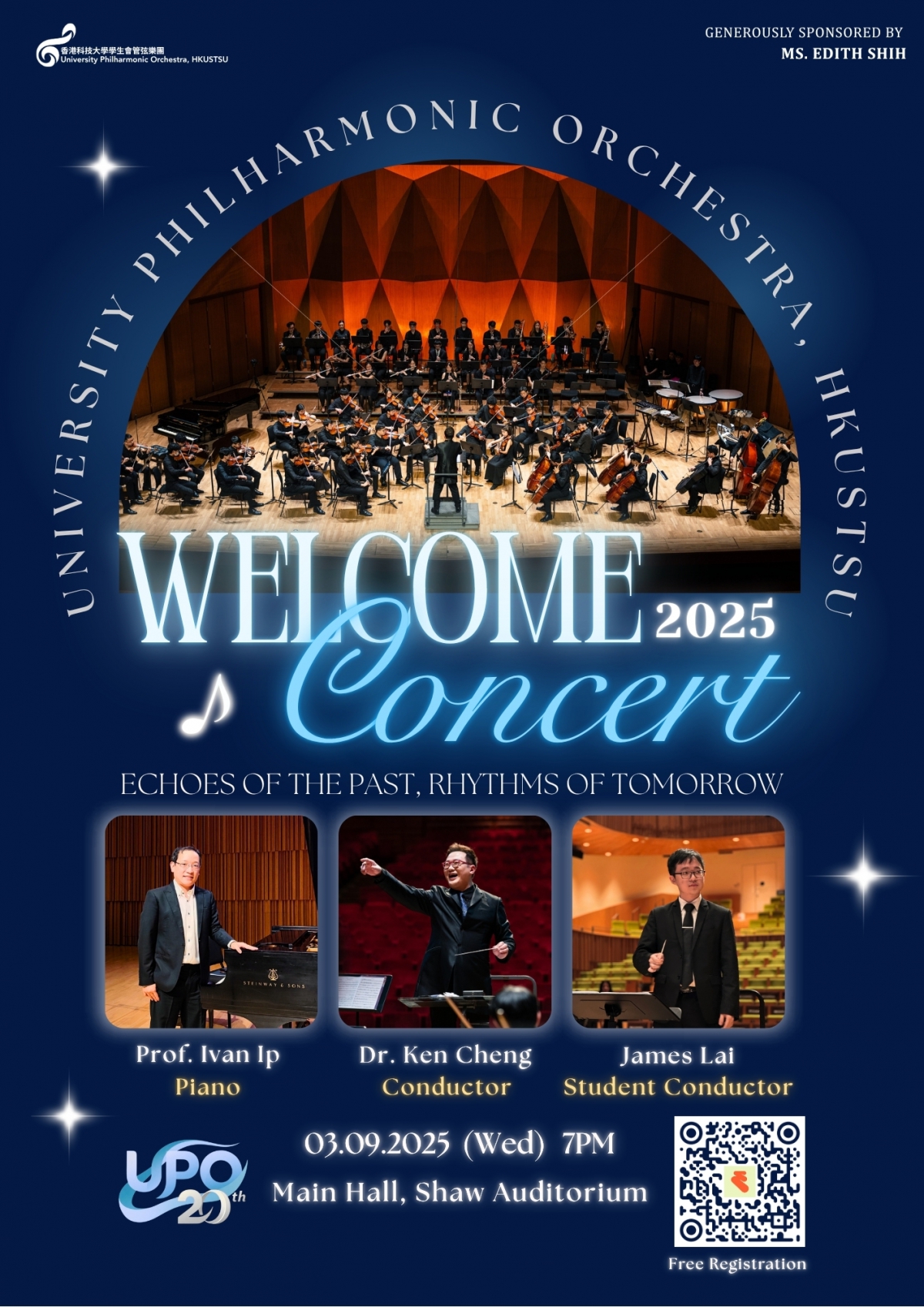 Rationale: For as long as music has existed, it has been used as a way to reflect feelings of joy, excitement, and happiness. In that vein, our 2025 Welcome Concert will mirror the emotions of the University Philharmonic Orchestra, HKUSTSU celebrating its 20th Anniversary with a theme of "Resonance." This theme will transport our audience members on a journey of commemoration of the past, anticipation of the future, and appreciation of the present.
