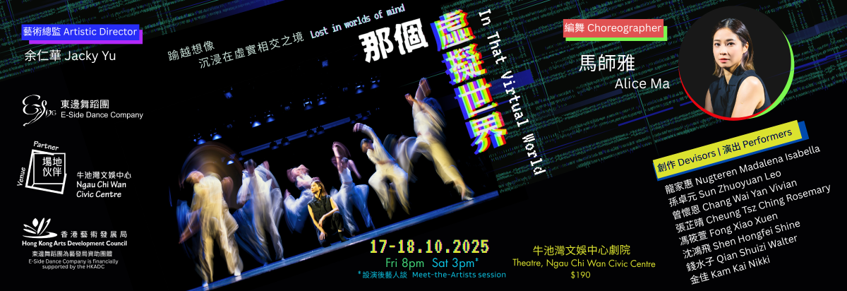 踰越想像沉浸在虛實相交之境編舞馬師雅活躍舞台探索舞蹈與不同媒介的碰撞作用。今次個人創作透過舞者身體呈現的是實體世界中經驗的虛幻刺激?還是真實與虛構之間交錯渾沌的流動時空?