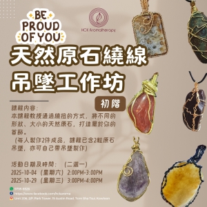 親手為獨一無二的天然原石打造專屬繞線設計!課程將教授基礎金屬線纏繞技巧,讓學員為不同形狀的原石創作精緻吊墜。無需經驗,輕鬆學會固定、裝飾及收尾技法,展現個人風格與自然之美。(每人製作2件成品)