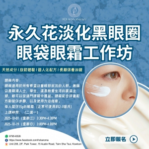 告別熬夜熊貓眼!親手調製天然植物精油眼霜,精選永久花等珍稀成分,有效改善黑眼圈與眼袋問題。課程將傳授專業配方與製作技巧,讓疲憊雙眼重現明亮光采。無需經驗,適合所有追求天然護膚的愛美人士。課堂每人製作15g的眼霜(正常可使用約2-3個月)