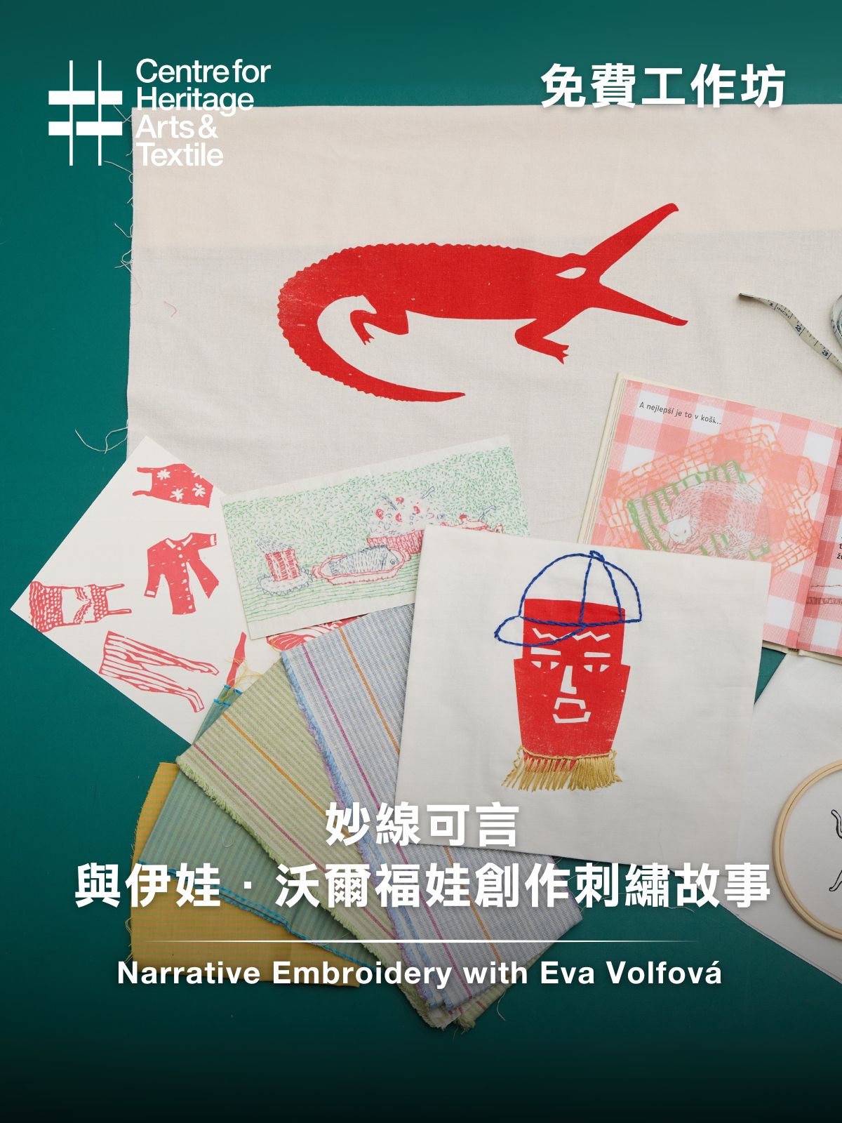捷克藝術家及插畫家伊娃.沃爾福娃將於線上與你一起探索用刺繡説故事的魔力!你將使用一款印有藝術家插畫的布料,以刺繡創作天馬行空的故事——你可以用色彩斑斕的棉線打造新奇的髮型、為洋娃娃設計衣服和梳頭、餵鱷魚吃東西,甚至把自己和熟悉的人也繡進場景裏,與伴侶或家人在針線世界中暢遊。在工作坊後把你的創作帶回家,向你的親朋好友分享你的冒險故事。