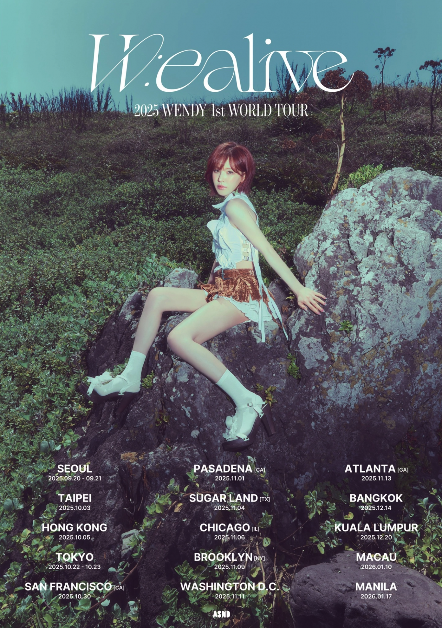 韓國女團Red Velvet成員WENDY宣佈舉行第一次世界巡回演唱會《W:EALIVE》,以韓國首爾作為演唱會第一站,之後會到香港、曼谷、東京、澳門等十多個城市進行巡演。