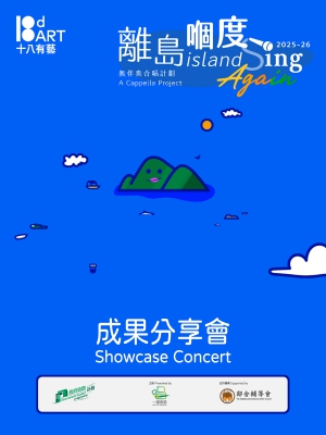 延續去年度計劃好評如潮,一舖清唱再度在離島區推行2025–26十八有藝 — 離島社區演藝計劃《離島嗰度》無伴奏合唱計劃。成果分享會將由初階無伴奏合唱訓練班及人聲口技工作坊(一)的學員獻技,將學習成果分享至離島區。