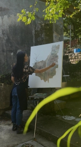以「冰染」與「鹽洗」為主要藝術表達手法,模擬並象徵自然山水在風化、侵蝕作用下形貌的變遷,讓大自然與藝術家共同完成的作品。