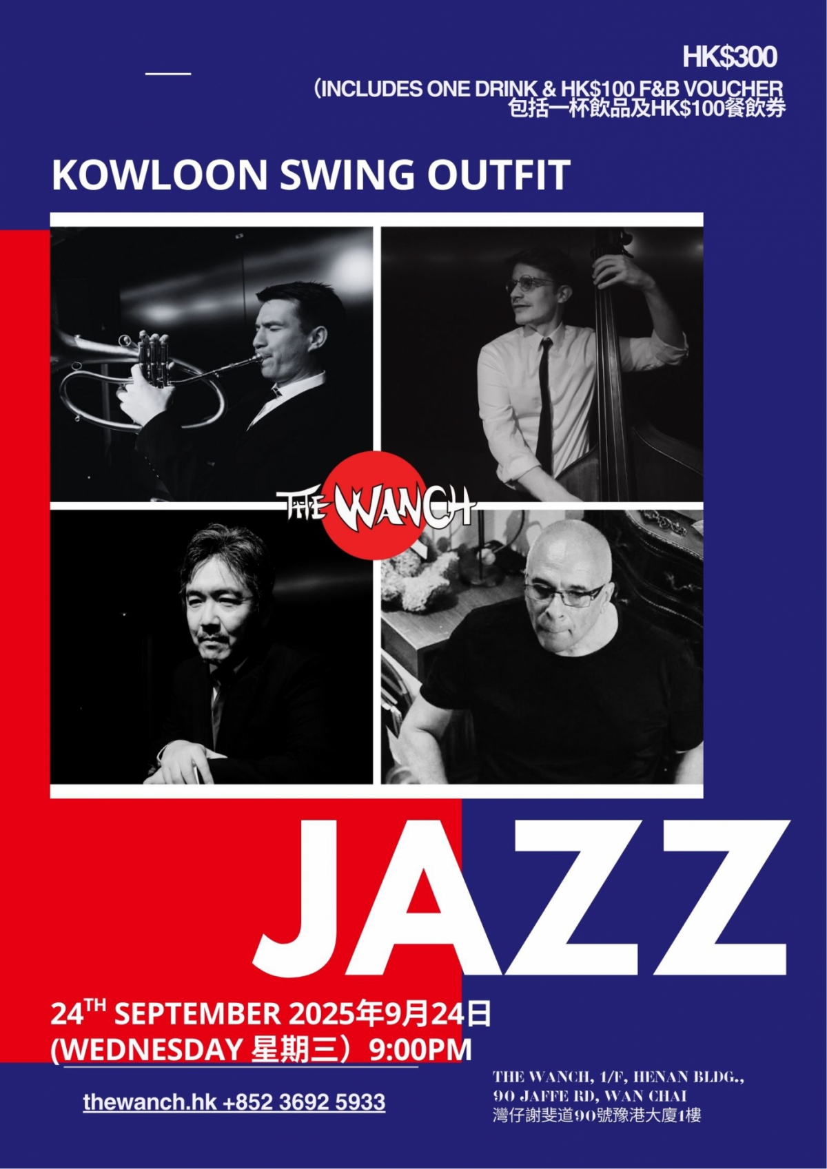 準備好一齊嚟過一個Swing嘅晚上啦!香港最受歡迎爵士樂隊之一 Kowloon Swing Outfit 會喺九月二十四日(星期三)重返 The Wanch,喺灣仔嘅中心地段帶嚟充滿活力嘅搖擺旋律同節奏!