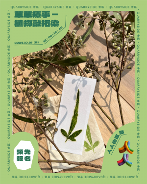 在花草樹木盛開的季節,收集並運用舍區內的花草來製作布料作品。一起學習拓印原理,讓植物的汁液溢出,藉自然的形狀及顏色來創作。