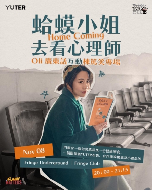 情緒困擾、睇輔導都可以係棟篤笑?經過台灣到英國各地巡演,<蛤蟆小姐去看心理師> Oli個人棟篤笑返香港喇,今次仲會加入互動元素! <蛤蟆小姐去看心理師> 靈感來自暢銷大眾心理學書藉《蛤蟆先生去看心理師》,在高壓的城市生活,運動、旅行甚至移民,是出口還是避走,面對自己是否才是最難