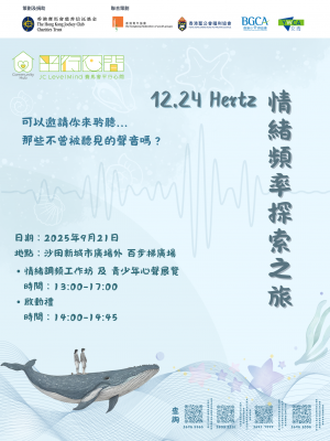 關注青少年情緒健康是近年的重要課題,但青年人的聲音往往不被聽見。沙田區四間賽馬會平行心間將於2025年9月21日於沙田新城市廣場外百步梯廣場舉辦「12.24Hertz情緒頻率探索之旅」,希望將青年人的聲音及情緒故事呈現,讓社會人士對青年人的情緒健康有更深了解和體會,與青少年情緒同頻;同時透過不同形式的情緒調頻攤位/工作坊,讓公眾人士有一個放慢腳步,專注當下,調適情緒的歷程。