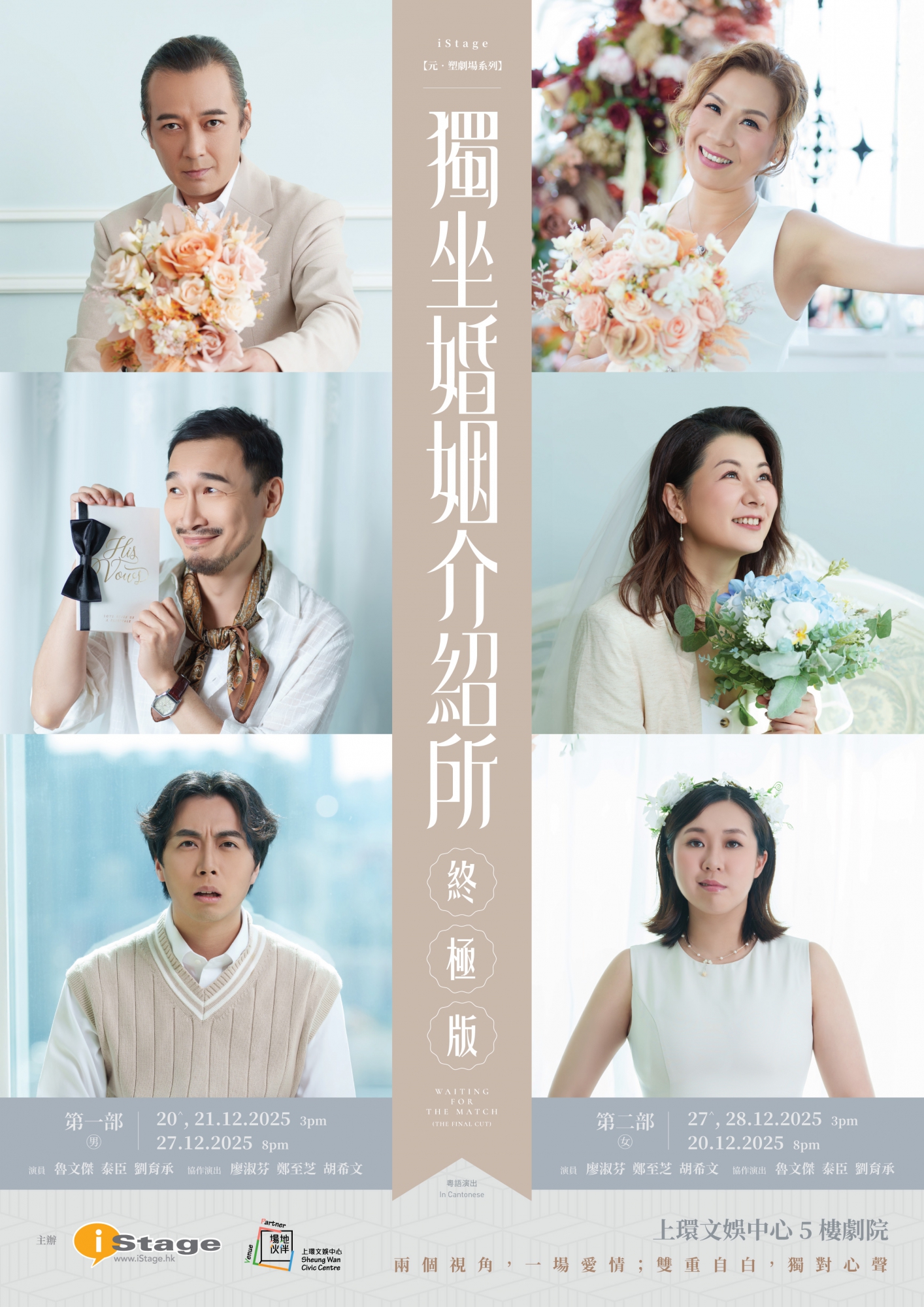 💺第一部(男版):一間標榜「百分百成功率」的婚姻介紹所,內設不容說謊的密室。三位男士接踵而至:一位與拼圖相伴半生,卻拼不出一段婚姻的中年老闆;一位熱衷「人體連結」、試圖以色慾填補「心靈斷裂」的IT人;一位利用多個博士學位,令情感「絕緣」的資優青年。當大門鎖上,一場針對內心的精密拷問隨即開始……