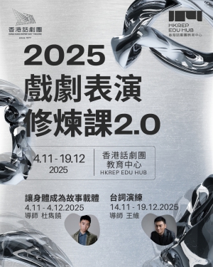- 香港話劇團保留安排導師人選,取消任何課程或更改上課時間、地點及形式等之權利。所有課程資料均以香港話劇團最新公布為準,如有更改,恕不另行通知。若有任何異議,香港話劇團擁有最後之決定權。