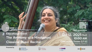 Following Ashwini Bhide's Cosmopolis Festival concert (October 11, 7:30 PM, Shaw Auditorium), this workshop will take participants through the basics of Hindustani classical music and khayal renditions, including an extensive Q&A session with all of the artists. The discussion will touch on the intricacies of ragas, which form the base of all Indian classical music, and on the improvisatory nature of the performance.