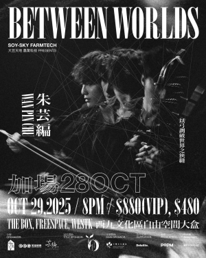 「 以弓劃破世界之狹縫 」在不同維度和不同的世界之間,生命到底是有起點、有終點的旅程,還是周而復始、綿綿不斷的循環?香港傑出二胡演奏家及電影配樂家朱芸編,以樂章勾出生命的抑揚頓挫,以弓劃破世界之狹縫。融合多元音樂語境,引領大家思索存在於不同世界之間的可能與意義——在起點與終點之間,在現實與想像之間,探索「BETWEEN WORLDS」的真諦。