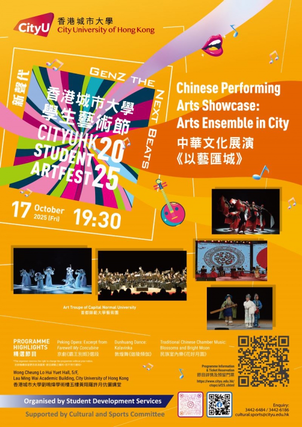 首都師範大學藝術團曾赴世界多國進行中華優秀傳統文化文藝演出,並將率團來港參與城大學生藝術節。是次文化展演匯集管樂團、話劇團、舞蹈團、京劇團、合唱團、弦樂團及民樂團的精英代表,展示年青藝術家的才華,引領觀眾探尋中華文化底蘊。