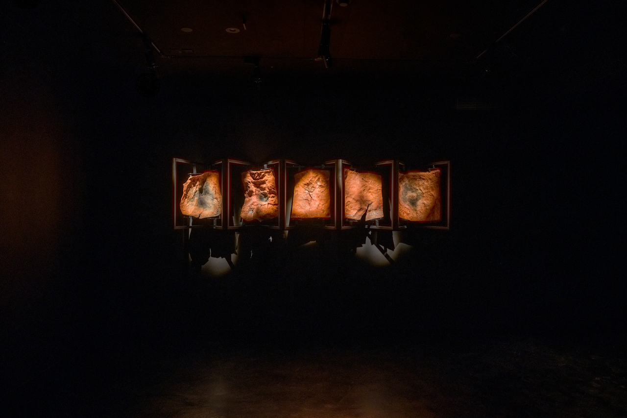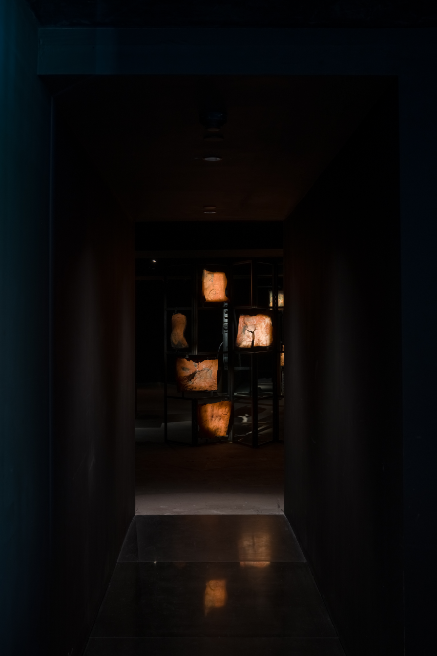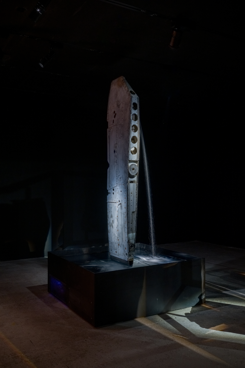 For her third solo exhibition at the gallery, Gork directs her practice towards the entanglement of the individual within a matrix of collective memories and traumas; formations which determine her on a somatic level, but which can only be known through the abstraction of history. Drawing on her own family history, research into historical records, and geographical explorations, Gama seeks to transmute her reflections on the specters of both American and Japanese imperialism (and the charged silence surrounding the Battle of Okinawa) into a psychoacoustic landscape within the gallery. Scattered across the upper and lower floors are a sequence of haunting ceramic reliefs—formed using a type of red clay unique to Okinawa—whose forms mirror at once the complex internal topographies of the island's various limestone caverns as well as their resultant echoes. Conceived less as static architectures than as permeable membranes, their organic contours are animated by the sound of water and metal emanating from a series of new sculptures assembled from aviation scrap. Referencing the form of so-called "zen fountains" often found in new age or therapeutic settings, Gork's devices instead confound our desires for relaxation and closure; forcing us, with their unapologetic intensity, towards an embodied awareness of our own agency.