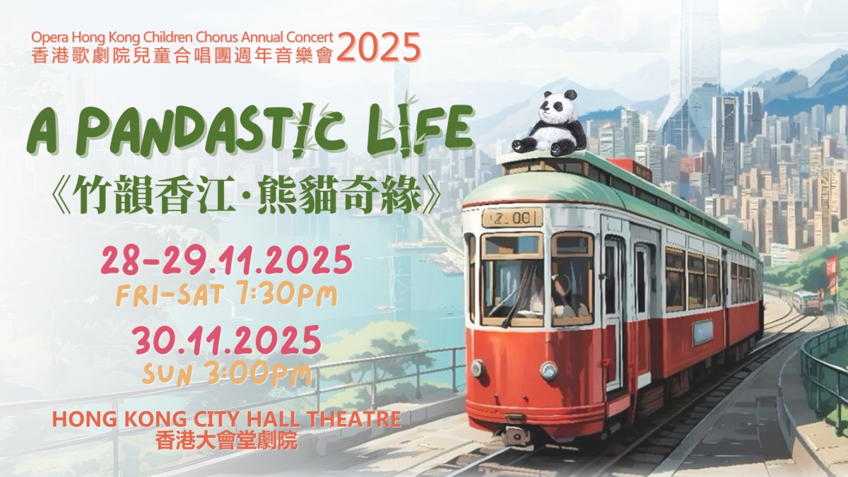香港歌劇院兒童合唱團即將於2025年11月28至30日,於香港大會堂劇院上演一齣專為香港譜寫的原創音樂劇《竹韻香江·熊貓奇緣》。