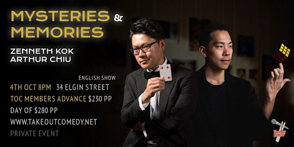 Magician Arthur Chiu and Mentalist Zenneth Kok collaborate to present a show that blends stunning visual magic with incredible mind reading. Prepare for an unforgettable experience filled with mystery, destined to create profound memories.