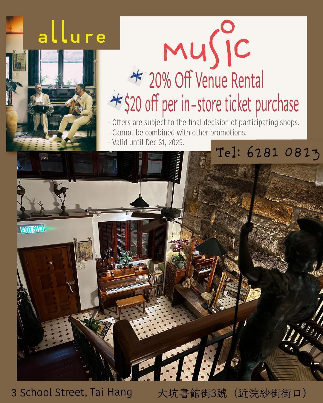 探索大坑的獨特魅力,感受髮型設計、音樂與美食的完美交融。💇♀️🎶🍴 從時尚造型到動人旋律,再到美味佳餚,邀您放鬆身心,盡情享受。🌟 憑Allure Pass尊享專屬禮遇!