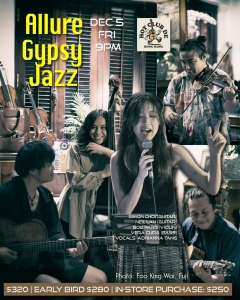 體驗1930年代巴黎的活力,在世紀石屋的Allure音樂沙龍內,與及爵士樂隊Hot Club de HK度過美妙的夜晚。