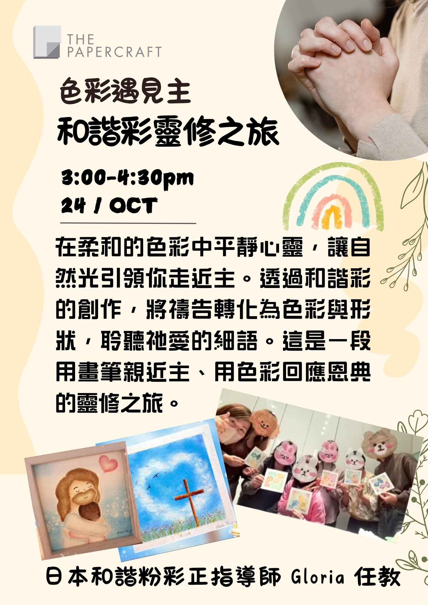 在柔和的色彩中安靜心靈,讓天然光引領你走進主的同在。透過和諧彩的創作,將禱告化為色與形的流動,聆聽祂細語的愛。這是一段用畫筆親近主、用色彩回應恩典的靈修旅程。