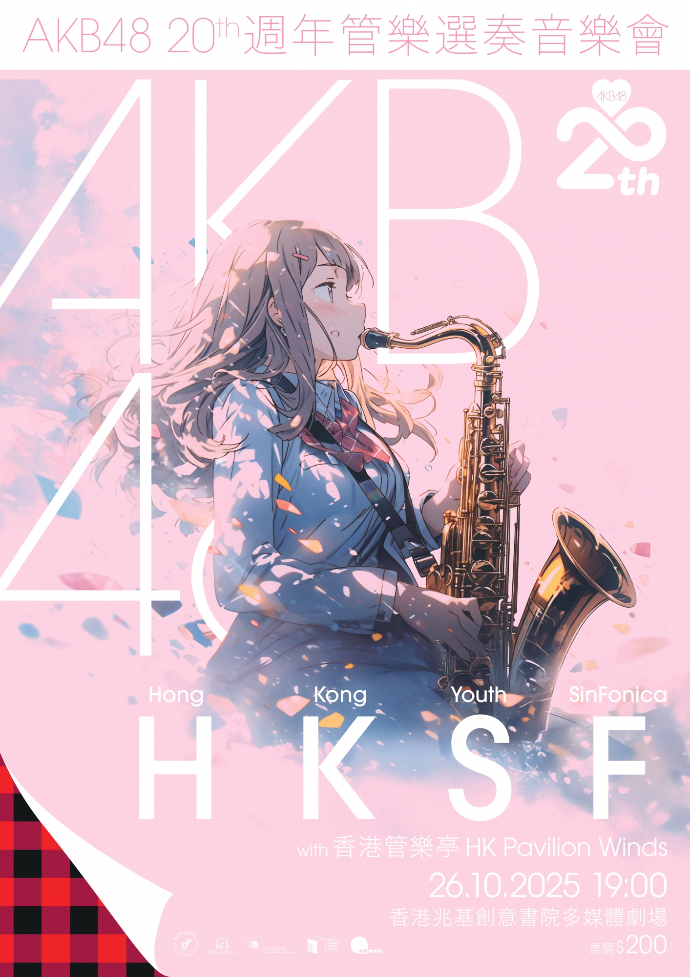 管樂流行音樂會2005 年,日本女子偶像團體 AKB48 以「可親近的偶像」為理念正式成立。今年,為慶祝 AKB48 成軍 20 周年,SF 管樂團將會聯同香港管樂亭攜手舉辦這場結合偶像流行與管樂藝術的音樂會!我們將以管樂獨有的音色重新演繹多首 AKB48 經典曲目,帶領大家回顧這二十年來陪伴無數樂迷成長的青春旋律,一同感受跨界音樂的無限魅力。