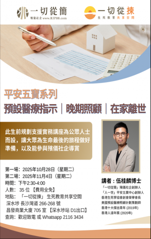 【生死教育關懷友善雙週2025 】平安五寶系列:預設醫療指示 + 晚期照顧 + 在家離世
