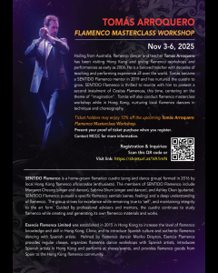 佛蘭明高歌舞匯演,由本地佛蘭明高歌舞組合 SENTIDO Flamenco,佛蘭明高舞蹈團 Esencia Flamenca,及海外舞蹈家 Tomás Arroquero 攜手演出,現場音樂伴奏。