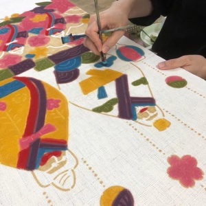 「紅」並非單指紅色,而是代表所有鮮豔的色彩,「型」則指模板印花技法,整體意為「多彩的印花染色法」。紅型起源於琉球王朝時期,是深受中國、日本及東南亞影響的貴族專屬織物,其圖案靈感來自琉球松、芙蓉花、海浪等南國風物。為了讓初學者輕鬆體驗,我們將化繁為簡,跳過傳統工序中繁複的型紙雕刻與蒸洗定型,直接進入核心環節,讓您在一小時內輕鬆體驗這門工藝的核心樂趣。您可自由選擇將經典的紅型圖案(如芙蓉花、海浪紋)創作於實用杯墊或小巧手提包上。在職人的貼身指導下,即可調配出專屬色彩,完成一件獨一無二、充滿個人風格的沖繩紀念品。
