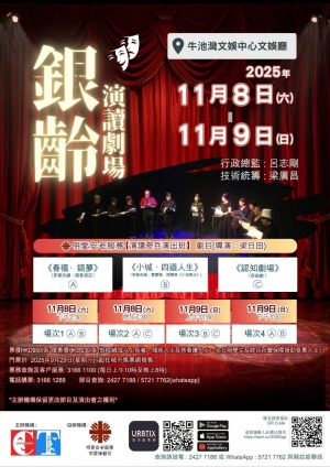 《小城-四道人生》演讀劇場 (演出 : 場次1、3、4)在平靜的小城內,居民如常地生活。愛美麗婚後幸福快樂,卻因難產而去世。葬禮後,她堅執地要回到人世間,如願地返回十二歲生日那天….讓我們一同見證這場生死穿梭,同時反思 生命及四道人生 的領會。