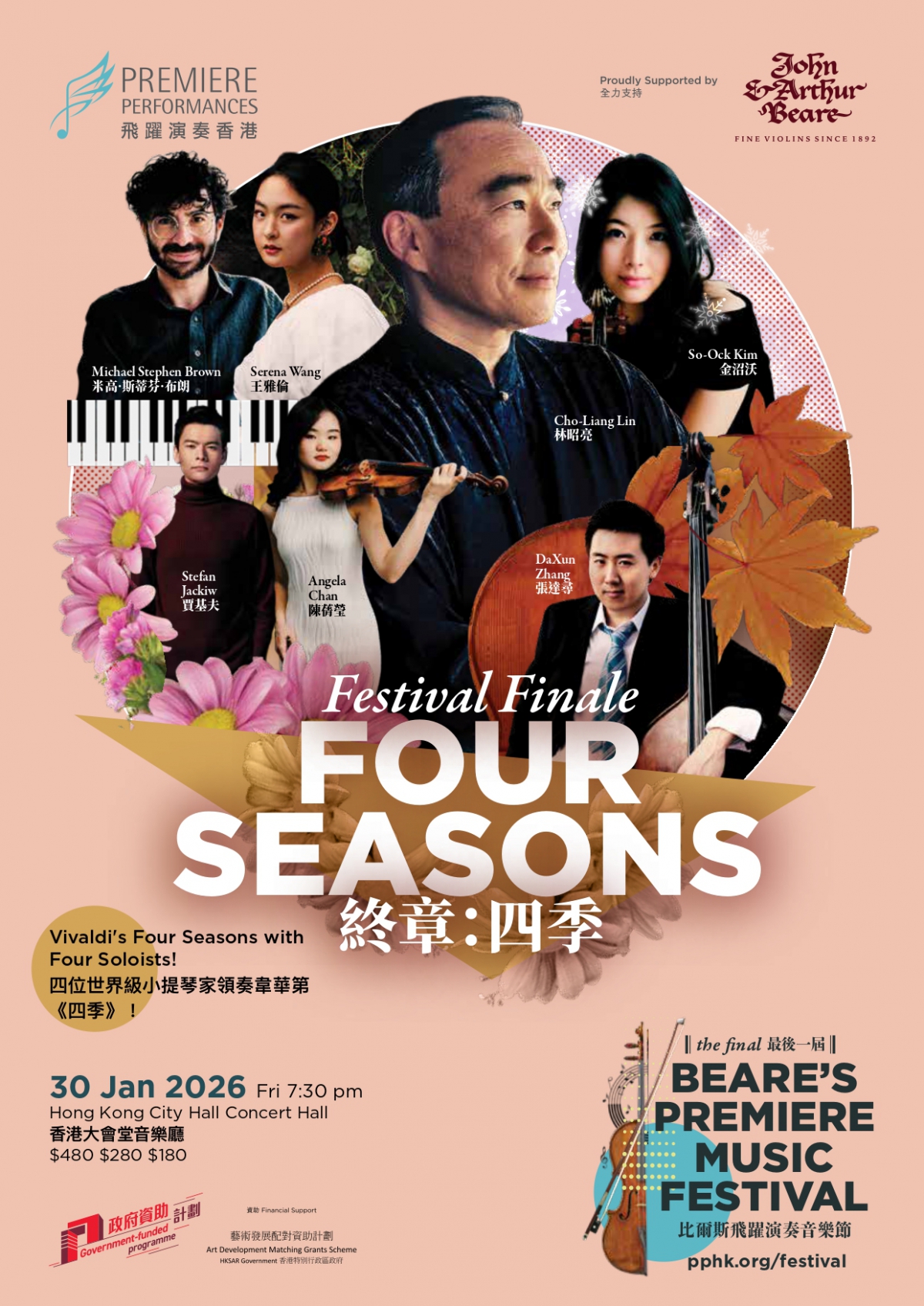 音樂會下半場將帶來精彩絕倫的韋華第經典名作《四季》,並由四位傑出小提琴獨奏家輪流領奏:音樂節藝術總監林昭亮、賈基夫,金沼沃,以及香港新星陳蒨瑩。