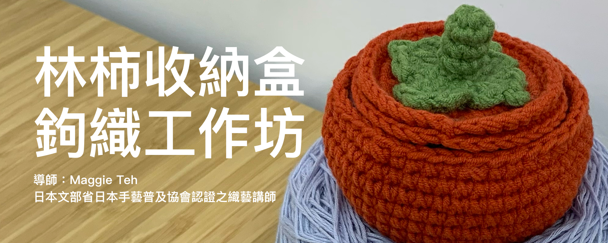 融合秋意與實用性的手作體驗,這堂課將帶領學員鉤織出可愛又富節慶感的「林柿收納盒」!外型靈感來自飽滿討喜的林柿,配搭可開合的盒身設計,不僅是秋冬家居的療癒擺飾,也能收納飾物、小物,實用又美觀。