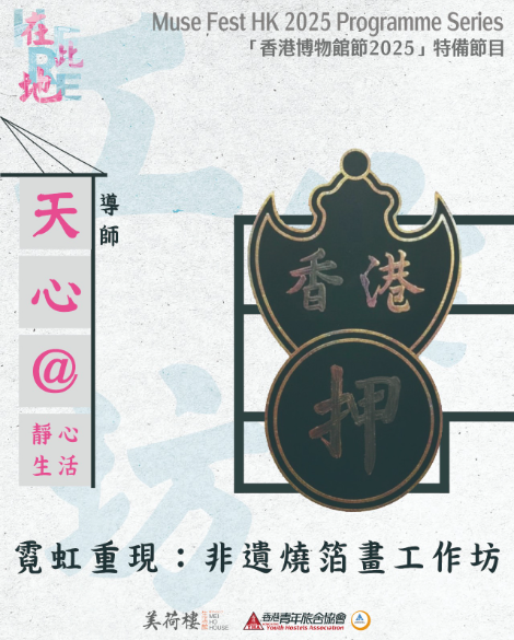 本次工作坊邀請了「靜心生活」創辦人的天心,帶領大家認識燒箔畫,並體驗這門中國傳統民間工藝的魅力,利用仿金屬箔片,創作出富有光澤感的作品,重現及保存昔日香港當舖霓虹燈牌的璀璨光芒!