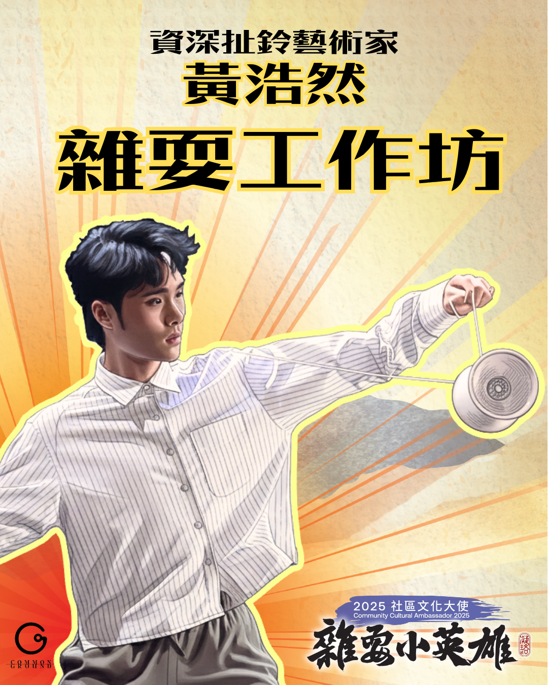工作坊由資深雜耍藝人 #黃浩然 主持,專注於雜耍藝術中極具動感的一環—— #扯鈴。課堂以提升身體靈活度與協調性為基礎,循序漸進教授入門技巧,從基本動作出發,建立穩固的技術根基,進一步探索扯鈴的節奏、控制與創意表現,讓參加者在動作與節奏之間,享受扯鈴的樂趣與成就感。