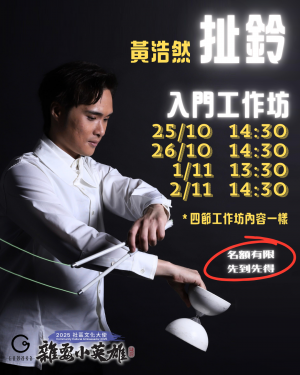 ・工作坊所須之扯鈴道具將由主辦單位於當日提供,參加者須於工作坊完結後歸還