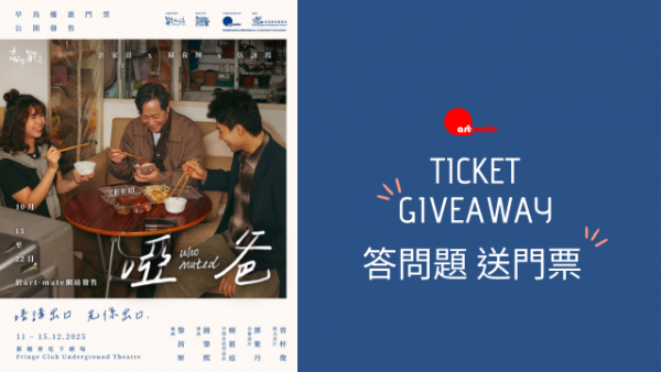 結果公佈:主辦單位將送出 4 張門票,答中又被抽中的 4 位參加者將獲贈 1 張門票。