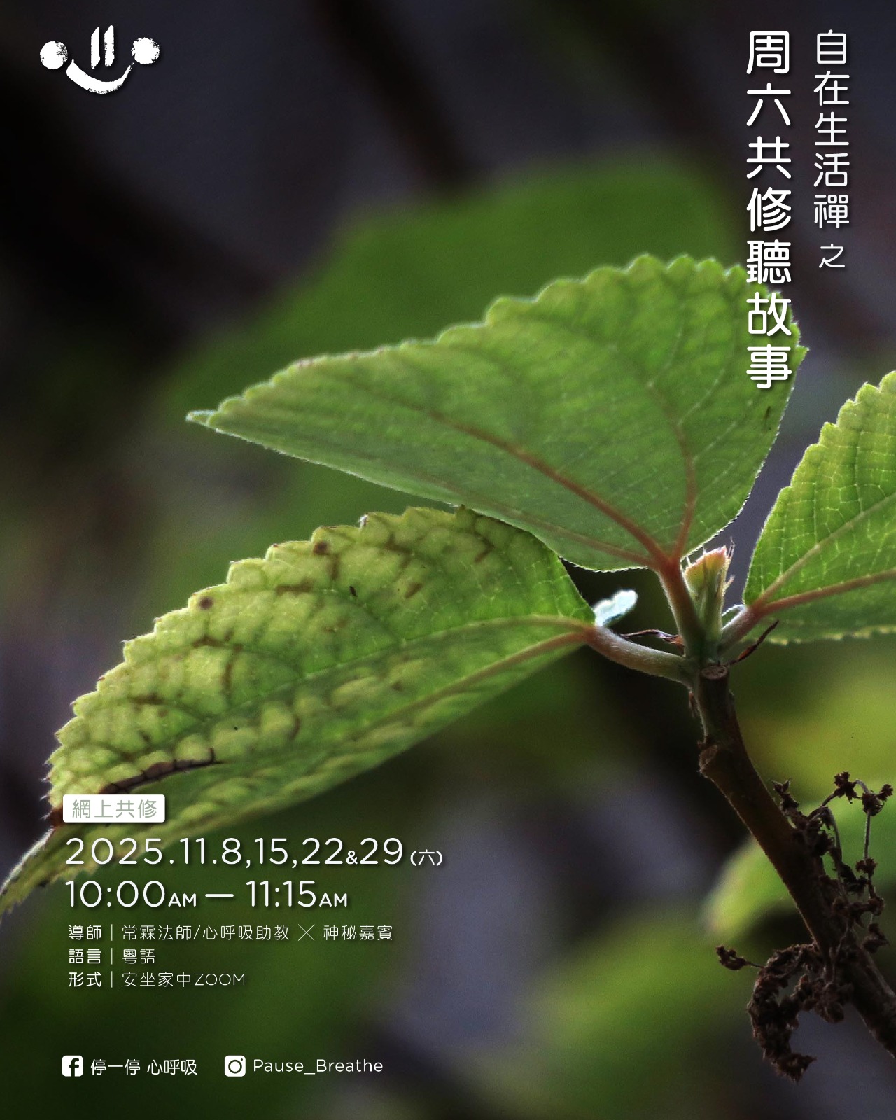 「自在生活禪」之《周六共修聽故事》網上共修(11月)停一停 心呼吸