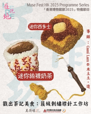 在木土土•造的 Cassi Lam 帶領下,參加者將以俄羅斯刺繡工藝為靈感,運用柔軟毛線與專用刺繡針,戳出奶茶和西多士的圖案,將這兩道熟悉的味道製作成一口大小的刺繡襟針!