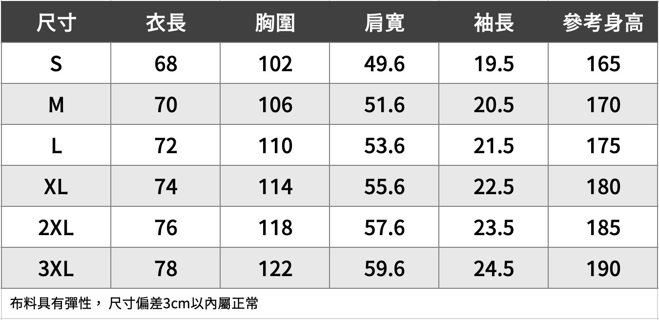 布料具有彈性,尺寸偏差3cm內屬正常