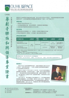 程」,擔任課程主任及導師於香港藝術中心及香港公開大學教授粵劇曲