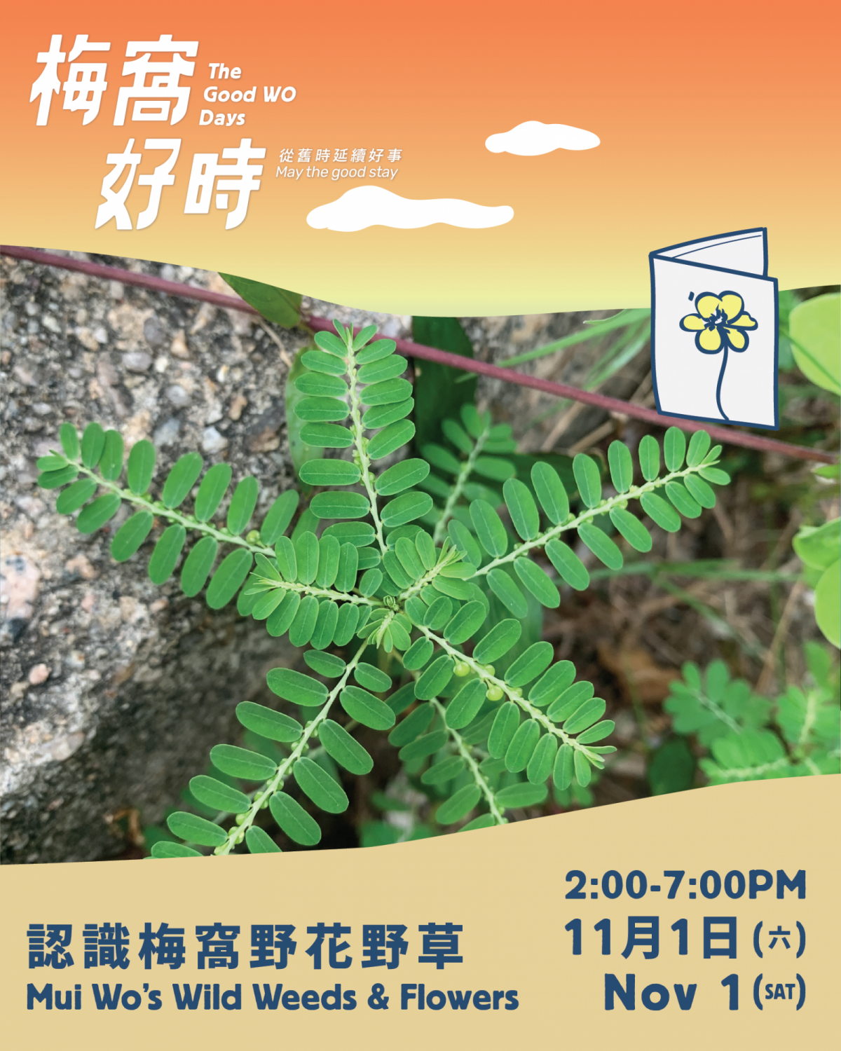「我細個就係呢個煲茶,飲兩日,感冒就好返啦!仲快過而家啲中藥!」「濕疹可以用呢隻草喎!」「我每次喉嚨痛就去摘幾塊!」與梅窩的街坊就在路上,總是自然聽到他們提及各種從小到大使用過的野花野草,體現到大家與自然環境的熟悉,以及當中蘊含的許多故事。我們收集了街坊的小智慧,製作了小冊子「梅窩野花野草」,讓公眾自己探索。屆時亦會有小型展示,讓你看看野花野草的真身,詳閱街坊們的貼士!
