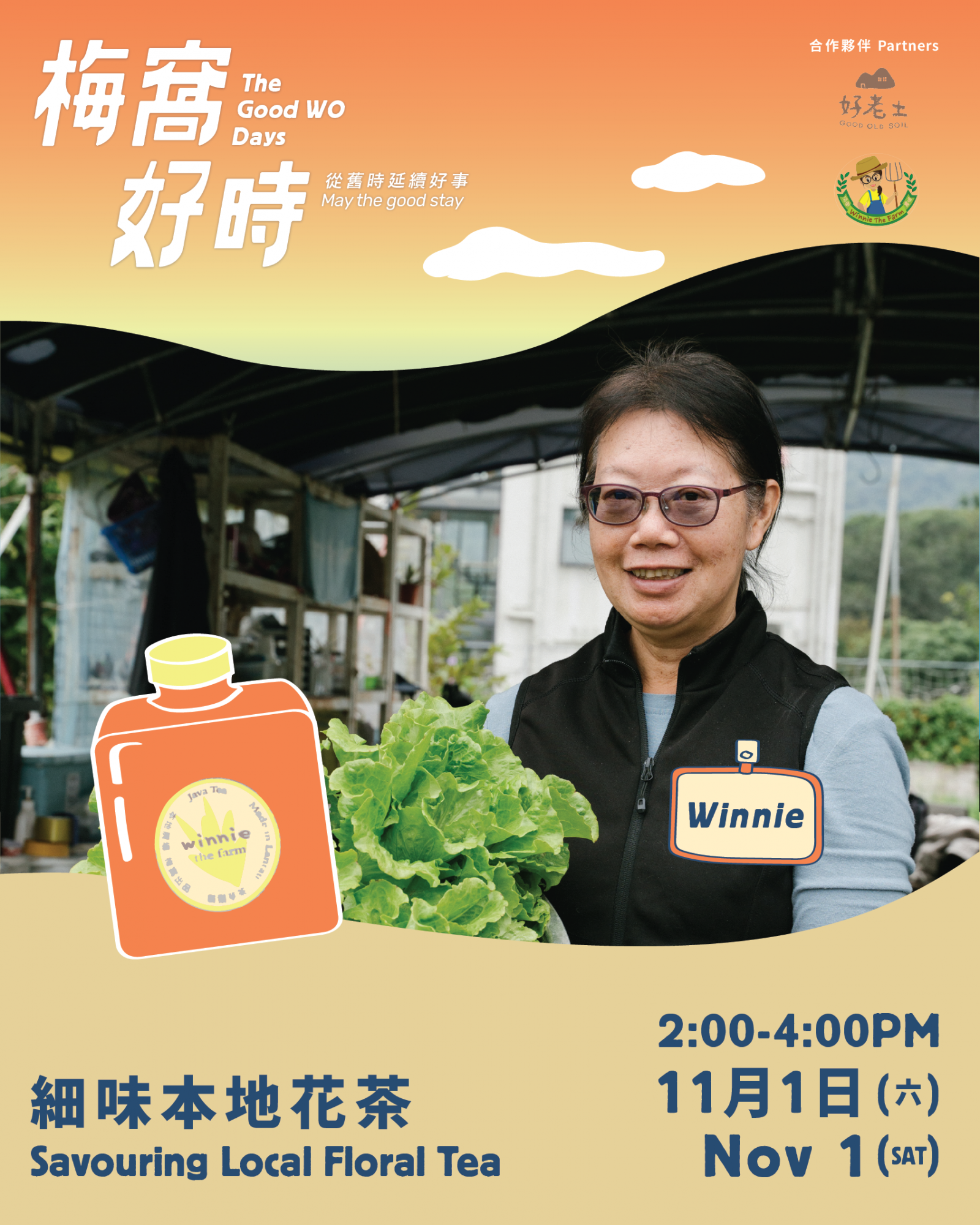 農夫 Winnie 將會準備四款親自栽種及製作的花茶,邀請街坊一同細味梅窩風味,並於榕樹頭下細聽農夫的故事。