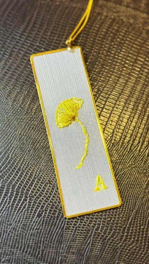 - 製作一張刺繡書簽 ( 銀杏加一個英文字母 )