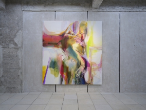 卡尼在1992年生於明尼蘇達州,現生活工作於紐約。她通過創作繪畫及素描作品探索個體經驗、記憶及人際關係等主題,關注生命的脆弱性和不穩定性,以不適狀態或自行施加的限定性條件為基礎開展每次繪畫行動。在此次展覽中,包括《Subrisio Saltat》(2025,此多義拉丁詞語有「雜技演員的微笑」、「懸置的微笑」或「跳躍的微笑」之意)、《D代表堅韌存在》(2025)及《觀看的玫瑰》(2025)在內的主要作品均以奧地利詩人賴內·馬利亞·里爾克《杜伊诺哀歌》中的詩句為題。然而,此系列作品並不是文學內涵的視覺再現;卡尼在畫作中關注構圖和諧關係以及多個不和諧時刻的組織協調,平衡多種力量、光線、重力以及顏料自身的重量,並將閱讀、解讀及進行跨文本聯繫的權利交予觀者。
