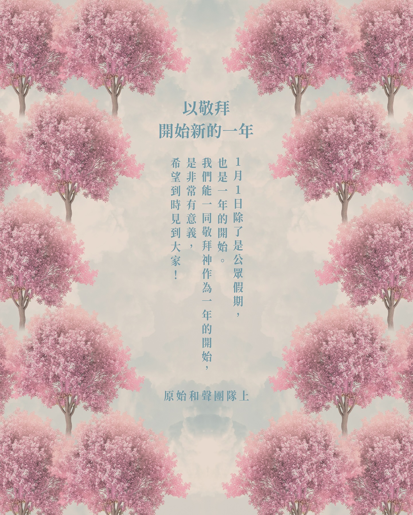 由原始和聲 (Raw Harmony) 主辦,敬拜音樂會 Worship Live 以「無有」為主題,並首次在伊利沙伯體育館舉行,邀請了專業的舞台與幕後製作團隊共同合作,從視覺效果、舞台設計到音樂編排,都採用了全新的方式來呈現這場敬拜音樂會的主題,約兩小時的敬拜,新歌與舊詩歌,一月一日,以敬拜開始新一年,邀請您前來一同敬拜。