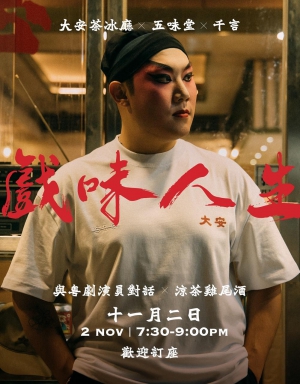 戲曲唱出人生百味, 涼茶雞尾酒入口回甘。傳統對話當下,戲味入酒成甘。一場只此一夜的跨界對話,大安限定。對話包括:粵劇由來及演變介紹「唱、念、做、打」千言的藝術背景與表演經驗五味堂調製的涼茶雞尾酒兩杯花生佐酒小食關於 千言原名陳傲賢。師承文千歲、梁少芯。專工文武生、小生。6歲初踏台板,曾在校際粵曲比賽獨唱組中獲得冠軍。修讀於嶺南大學,畢業後開始參與戲班的演出。不時被邀請到星加坡,馬來西亞,美國,加拿大等作演出交流。
